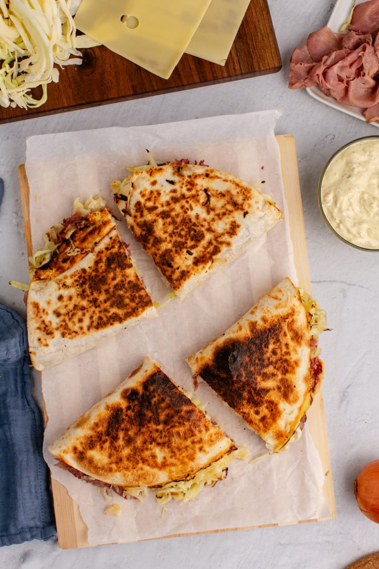 - Green Cabbage: Cabbage is often paired with corned beef. Here it adds some texture to the quesadilla.