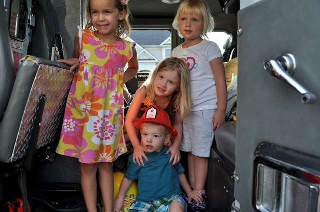We kicked our vacation with the annual block party that goes on out on our street. We block the street off starting around 4pm and let the kids {and adults} go wild. Each year, the local volunteer Fire Department also stops by with the their truck.